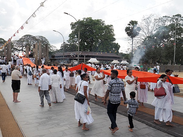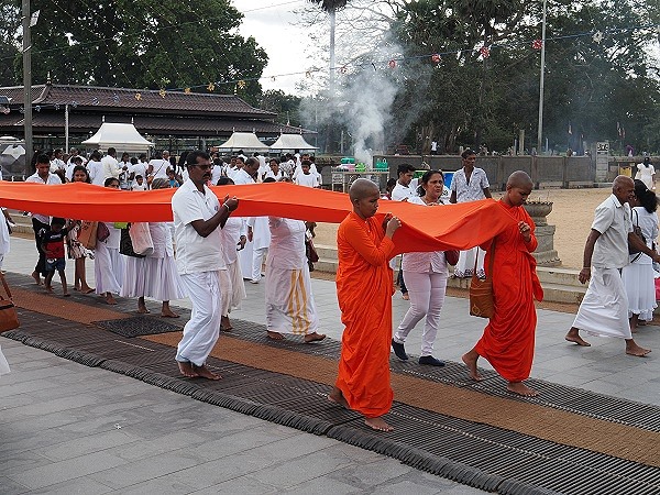 Der Geruch von brennenden Öllampen, das Aroma von Lotusblüten und die rhythmischen Klänge der Trommeln verschmelzen zu einem Erlebnis, das die tiefe Spiritualität Sri Lankas unmittelbar erfahrbar macht. Wer zusieht, sollte sich im Hintergrund halten, um die Zeremonie nicht zu stören, kann aber oft beobachten, wie Pilger Fremde dazu einladen, den Stoff für einen Moment mit anzufassen, um an dem positiven Karma teilzuhaben.