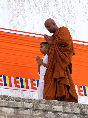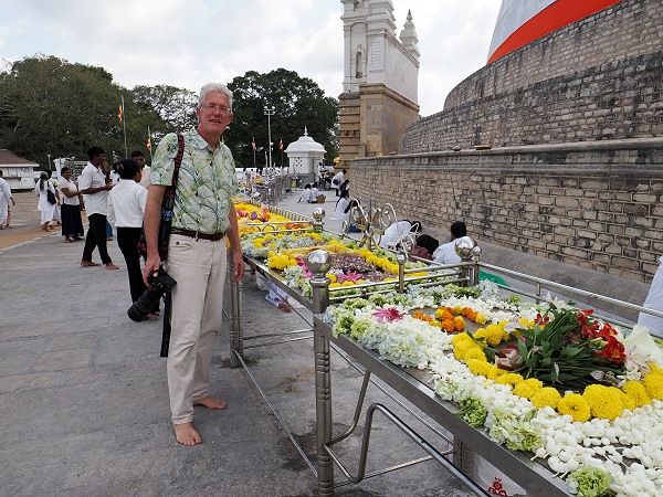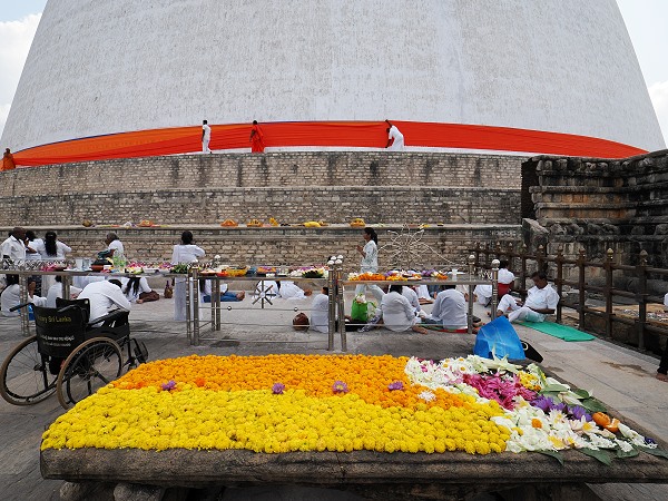 Wenn man das Glück hat, eine Kapruka Pooja zu erleben, ist die Energie vor Ort greifbar. Das leuchtende Orange des Stoffes vor dem strahlenden Weiß der Stupa bietet einen unvergesslichen Anblick. Wir waren begeistert.