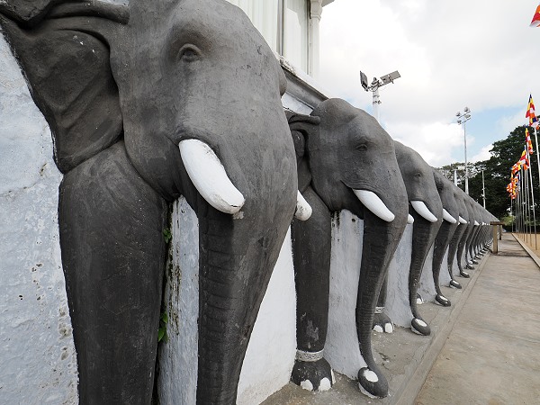 Ein besonders beeindruckendes Merkmal der Anlage ist die sogenannte Elefantenwand. Rund um den Sockel der Stupa scheinen hunderte von lebensgroßen Elefantenreliefs das massive Bauwerk auf ihren Rücken zu tragen, was die Stärke und Beständigkeit des Glaubens symbolisiert. Die 344 Elefanten, die diese Stupa tragen, wurden in der Moderne restauriert, basieren aber auf dem antiken Design. Sie bilden die sogenannte Hatthisala, die Elefanten-Terrasse. Sie sehen alle quasi gleich aus, unterscheiden sich aber durch die jeweils individuell gestalteten Fußfesseln.