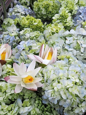 Der Duft von brennenden Öllampen und Räucherstäbchen erfüllt die Luft, während das leise Murmeln von Gebeten und das Schlagen ritueller Trommeln eine fast meditative Stimmung schaffen. Überall werden Opfergaben mit wunderschönen Blüten getragen und auf Tischen vor der Stupa abgelegt.