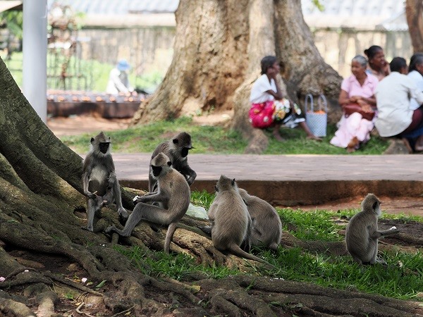 Unter den Bäumen außerhalb im nahen Park suchten Mensch und Tier Schatten und Ruhe. Hier lauern die Hanuman-Languren, sie gelten in Indien und Sri Lanka oft als heilig, da sie mit dem Affengott Hanuman assoziiert werden. In Anuradhapura sind sie allgegenwärtig und lauern auf eine Chance, sich etwas Futter zu stibitzen. Doch selbst dazu war es ihnen an diesem Tag zu heiß, sie lagen lieber herum und lausten sich gegenseitig.