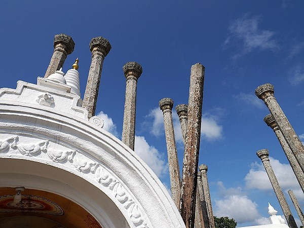 Die Säulen sind kunstvoll behauen, die Kapitelle oben zeigen oft Schnitzereien von Fabelwesen oder Lotosblüten. Obwohl das Dach längst vergangen ist, verleihen die Säulen der Thuparamaya ihre einzigartige, filigrane Silhouette.
