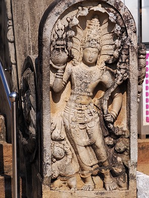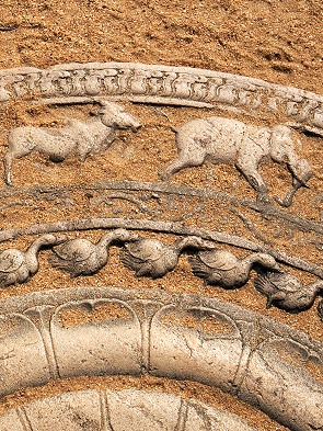 An den vier Himmelsrichtungen der Stupa befinden sich steinerne Altäre, die sogenannten Vahalkadas. Hier legen Gläubige ihre Blumenopfer nieder. An den Eingängen zu den Altären sieht man oft Reliefs von Naga-Raja, den Schlangenkönigen, die als Schutzgeister fungieren. Sie halten einen Krug der Fülle in der Hand, ein Symbol für Wohlstand.
