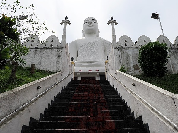 Hoch über den Dächern von Kandy thront der Bahirawakanda Vihara, der besonders durch seine monumentale, strahlend weiße Buddha-Statue auffällt, die wir schon von unserem Balkon im Hotel sehen konnten.
