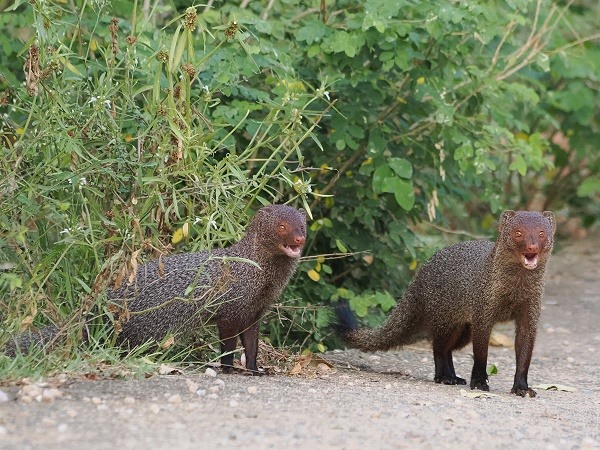 Unser Besuch im Block 5 des Yala-Nationalparks hielt noch weitere Tierbeobachtungen bereit. Besonders flink und faszinierend waren die Mungos, die immer wieder am Wegesrand auftauchten und neugierig durch das Unterholz huschten. Mutter und Kind unterhielten sich und ließen sich wie kleine Models gut und formatfüllend fotografieren.