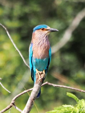 Neben den majestätischen Elefanten, die in dieser Region in kleinen Gruppen durch das dichte Gebüsch zogen, konnten wir auch die hier seltene, farbenprächtige Racke beobachten. Ihr leuchtend blaues Gefieder war ein wunderbarer Kontrast zum satten Grün der Vegetation, während sie geduldig auf einem Ast verharrte, um im nächsten Moment im Sturzflug nach Insekten zu jagen.