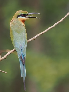 Der Blauschwanzspint (Blue-tailed Bee-eater oder Merops philippinus) ist ein häufiger Wintergast in Sri Lanka und in Udawalawe sehr regelmäßig anzutreffen. Er hat einen namensgebenden blauen Bürzel und Schwanz sowie eine gelbliche Kehle, die in ein kräftiges Rostbraun übergeht.