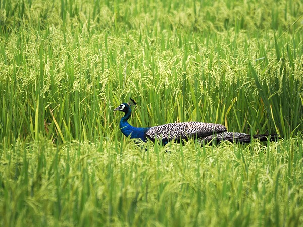 Fast direkt am Seeufer liegt nur eine einzige kleine Unterkunft, weiter hinten leben Bauern, die ihre Felder bestellen. Manchmal kommen Angler mit dem Tuk-Tuk oder Motorrad an das Ufer, ansonsten ist hier kaum Verkehr vorhanden. Wir konnten ganz in Ruhe Vögel wie Fischadler, diverse Reiher und Kormorane beobachten, während in den Feldern und auf dem Weg zahlreiche Pfaue umherliefen. Auf dem See war ein einsamer Fischer unterwegs.