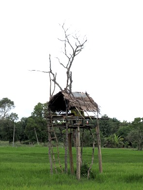 Um ihre Existenzgrundlage zu schützen, errichten die Bauern provisorische Wachtürme, die sogenannten Kulas, direkt am Rand oder inmitten ihrer Felder. Im Umkreis vom S ee kann man zahlreiche sehen. Es sind einfache Holzkonstruktionen in den Baumkronen, sie bieten den einzigen Schutz vor den grauen Riesen. Während der Erntewochen übernachten die Männer auf den Feldern, um beim ersten Knacken im Unterholz oder dem charakteristischen Grollen der Elefanten sofort einsatzbereit zu sein.