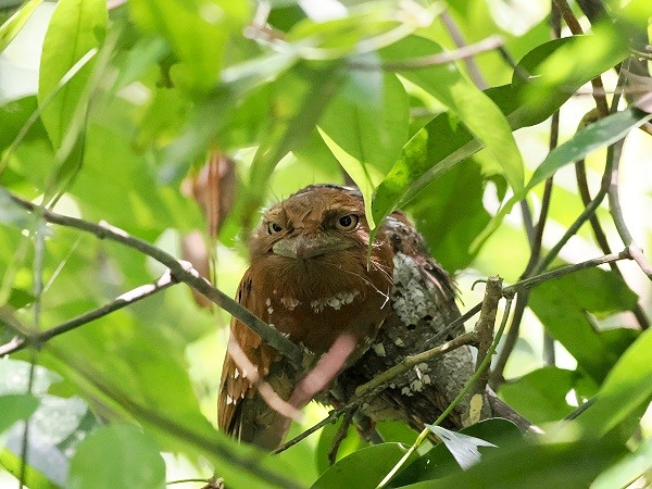 Für eine wahre Rarität und ein Highlight für Fotografen mussten wir über einen schmalen Weg steil nach oben klettern. Prabath war am Telefon und ließ sich von einem Freund leiten, während er im Blätterwald suchte. Dann hatten wir den Vogel der Begierde gefunden: Das Sri-Lanka-Froschmaul (Batrachostomus moniliger), im Englischen Sri Lanka Frogmouth, ist wohl einer der am schwersten zu entdeckenden Vögel im Sinharaja-Wald. Er ist ein naher Verwandter der Nachtschwalben und ein absolutes Highlight für jeden Naturbeobachter, da er die Kunst der Tarnung zur Perfektion getrieben hat. Dieser Vogel ist so perfekt als abgebrochener Ast getarnt, dass man oft direkt an ihm vorbeiläuft, ohne ihn wahrzunehmen.