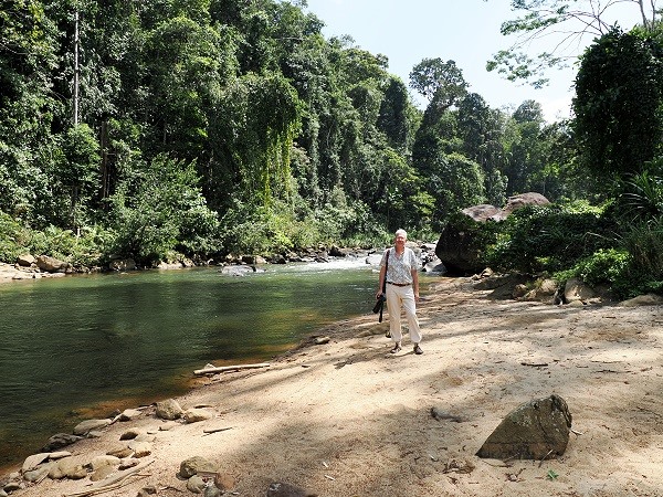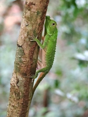 Hier sahen wir Affen, Gekkos und hörten sogar einen Specht. Der wollte sich aber nicht zeigen, schade. Auf tiefer hängenden Zweigen konnten wir einen Braunfliegenschnäpper beobachten, der in kurzen Ausfallflügen Insekten aus der Luft fängt und dabei eine erstaunliche Wendigkeit zeigt.
