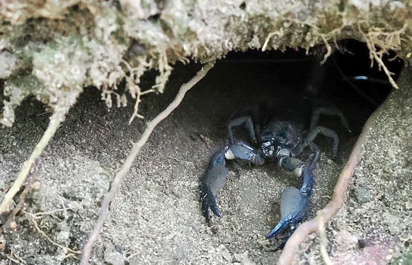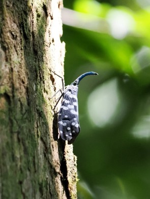 Auf dem Rückweg gab es noch eine Überraschung: Prabath fand ein Erdloch am Wegrand und stocherte mit einem dünnen Zweig darin herum, und heraus kam ein Blauer Riesenwaldskorpion (Heterometrus swammerdami), einer der größten Skorpione der Welt, etwa so groß wie eine flache Männerhand. Er beeindruckt durch seinen massiven Körper und den bläulich-schwarzen Glanz seines Panzers. Ebenso skurril wirkt die Laternenträger-Zikade (Fulgora), die mit ihrem verlängerten Kopffortsatz aussieht wie aus einer anderen Welt. Sie trägt ihren Namen aufgrund eines alten Irrglaubens. Früher dachte man, dass der lange Fortsatz am Kopf nachts leuchten würde, was jedoch wissenschaftlich widerlegt ist. Man vermutet heute eher, dass die Form zur Tarnung dient, indem sie einen abgebrochenen Pflanzenteil imitiert oder Fressfeinde durch ihre seltsame Gestalt irritiert. In diesem Ökosystem greift jedes Rädchen ins andere, und selbst die kurze Wanderung durch das Pitadeniya-Gebiet macht deutlich, warum der Schutz dieses UNESCO-Welterbes von so unschätzbarem Wert ist.