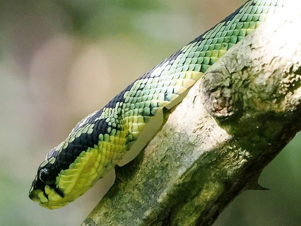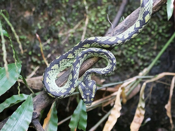 In diesem Teil des Waldes offenbart sich eine Vielfalt an Lebewesen, die oft nur hier in dieser Dichte anzutreffen ist. Wie schon an den Wasserfällen zwei Tage zuvor entdeckte Prabath auch hier einige Ceylon-Lanzenottern (Trimeresurus trigonocephalus), die gut getarnt im Wald lauerten.
