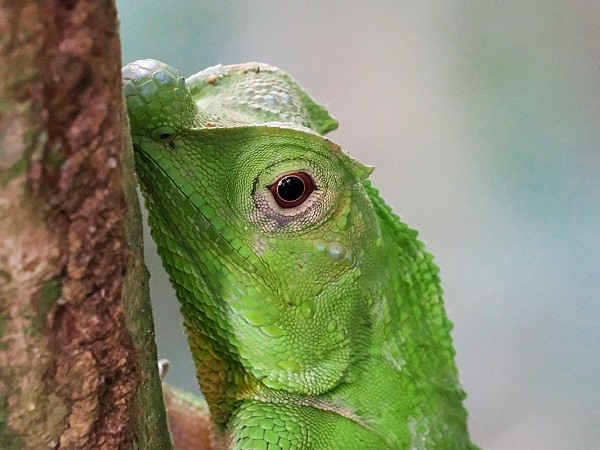 Wir gingen weiter und unser Guide suchte mit Erfolg auf der mittleren und unteren Etage des Waldes nach den Meistern der Tarnung. Die Höckernasenechse (Ceratophora tennentii), im Englischen oft Rhino-horned Lizard genannt, ist eines der skurrilsten und faszinierendsten Reptilien, die du im Sinharaja-Regenwald antreffen kannst. Sie verharrt oft völlig reglos an Baumstämmen, wobei ihre schuppige Textur eins mit der Rinde wird. Die Gattung Ceratophora umfasst fünf verschiedene Arten, die alle unterschiedliche Nasenformen entwickelt haben. Die Ceratophora tennentii mit dem charakteristischen, eher zylindrischen Horn ist strikt endemisch und kommt weltweit nur in einem sehr kleinen Areal in Sri Lanka vor, hauptsächlich in den Knuckles Range und im Sinharaja-Gebiet.