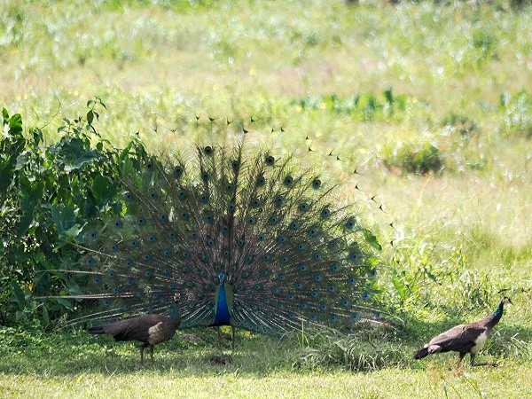 Auf einem Baum entdeckten wir viele Pfaue. Während der Pfau in der lokalen Kultur oft verehrt wird, ist er für die Bauern hier ein zweischneidiges Schwert, da er gerne die jungen Triebe in den Feldern frisst.