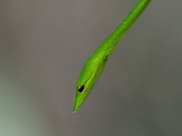 Was für ein Glück, direkt am Eingang hing eine dünne grüne Schlange im Baum. Wir waren begesitert. In den dichten Wäldern des Sinharaja-Waldreservats lebt diese faszinierende Jägerin meist verborgen: die Nasen-Peitschennatter (Ahaetulla nasuta), oft einfach als grüne Peitschennatter oder Vine Snake bezeichnet. Diese schlanke, tagaktive Schlange ist ein Meisterwerk der Evolution, perfekt angepasst an das Leben in den Baumkronen des Regenwaldes.
