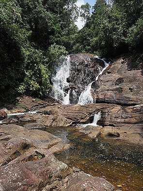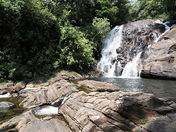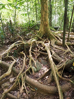 Eine Wanderung durch das Sinharaja-Waldreservat vom Lankagama-Eingang füht durch die ursprüngliche Wildnis Sri Lankas. Die Pfade, die tief in den dichten Regenwald zu den Wasserfällen führen, sind weit entfernt von befestigten Wanderwegen. Sie fordern den Besuchern eine gute Kondition und Trittsicherheit ab, da der Boden ein komplexes Geflecht aus Steinen, Felsen und massiven Baumwurzeln bildet. Diese rutschigen Wurzeln überziehen die steilen Aufstiege wie natürliche Treppen, verlangen jedoch bei jedem Schritt höchste Konzentration, besonders wenn die hohe Luftfeuchtigkeit den Untergrund mit einem feinen feuchten Schimmer überzieht.