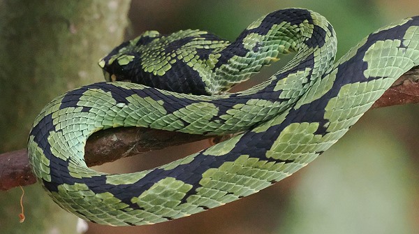 Diese endemische Grubenotter ist mit ihrer mattgrünen Färbung und dem charakteristischen schwarzen Streifenmuster perfekt getarnt. Meist verharrt sie völlig bewegungslos, während sie mit ihren hochempfindlichen Grubenorganen Wärmesignale ihrer Beute wahrnimmt. Die Ceylon-Lanzenotter ist eine der wenigen Schlangenarten, bei denen die Weibchen lebende Junge zur Welt bringen (Ovoviviparie), anstatt Eier zu legen.