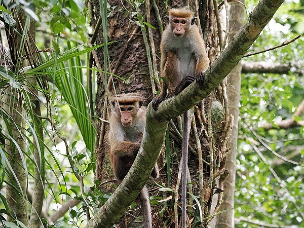 In den Zwischenräumen der Sträucher und Bäume spannen beeindruckende Radnetzspinnen ihre kunstvollen, oft riesigen Netze. Hoch oben in den Baumkronen sorgen die Ceylon-Hutaffen (Macaca sinica) für Unruhe. Man erkennt sie sofort an ihrem markanten Haarschopf, der wie ein kleiner Hut auf dem Kopf sitzt. Ihre spielerischen Interaktionen und das raschelnde Geäst begleiten den Wanderer auf dem Weg.