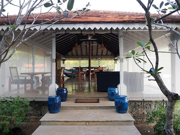 Eine Besonderheit vieler sri-lankischer Unterkünfte ist die offene oder halboffene Bauweise. In manchen Fällen waren die Badezimmer nach oben hin offen, meist abgedeckt mit einem Moskitoschutz. Geckos kommen trotzdem hinein, aber die sind willkommen, da sie die Moskitos fressen.