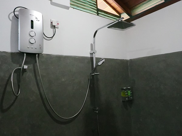 Ein weiterer Punkt ist das Warmwasser: In den meisten von uns besuchten Hotels war es verfügbar, in kleineren Gästehäusern jedoch manchmal nur zeitlich begrenzt oder über einen elektrischen Boiler geregelt. Kalt zu duschen ist zudem niemals "eiskalt" und bei der Hitze eher erfrischend, die Vermieter fanden es normal, immer ohne extra erhitztes Wasser zu duschen. Ganz neu sind hier kleine Durchlauferhitzer, die aufgrund der hohen Vorlauftemperaturen auch ohne Kraftstrom funktionieren. Oft gibt es zwei Duschen, eine für lauwarmes und eine für sehr warmes Wasser.
