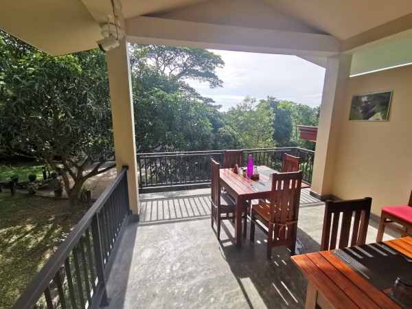 Man sitzt sehr schön in der ersten Etage des Restaurants mit Blick ins Grüne. Mit etwas Glück lassen sich am Morgen hier auch Vögel beobachten, weshalb wir unsere Kamera stets dabeihatten. Das hat sich gelohnt, da wir einen Kuckuck fotografieren konnten, während die Paradies-Schnäpper leider mehrmals zu schnell vorbeiflogen.