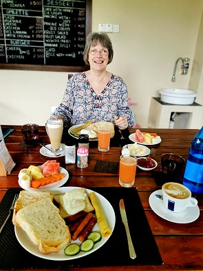 An den ersten beiden Tagen bestellten wir pochierte Eier, die auf einer Scheibe von Supermarkt-Toastbrot serviert wurden. Dazu gab es jedoch auch dicke, getoastete Stücke vom lokalen Brot, das uns viel besser geschmeckt hat. Das haben wir auch lobend erwähnt, doch leider gab es am letzten Morgen dann nur noch das eher geschmacklose Standard-Toastbrot.