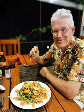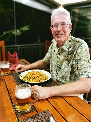 Am zweiten Abend bestellte Michael einen Thunfisch, der mit Fritten und Salat serviert wurde. Ich hatte mich für Reis und Curry entschieden, wozu es Bohnen, Möhren, Kartoffeln, Huhn und Dal gab. Als Nachtisch bestellten wir Schokoladeneis, dessen Portion sehr üppig und lecker war.