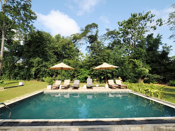 Das Hotel liegt in Palugaswewa, einem ruhigen Vorort im Norden von Anuradhapura, die Innenstadt ist von hier 16 Kilometer entfernt. Die Umgebung ist sehr naturnah und bietet gute Möglichkeiten für Spaziergänge oder Beobachtungen von Vögeln und Affen im Garten. Die Kuttam Pokuna, auch als Twin Ponds bekannt, sind etwa 2,5 km entfernt.