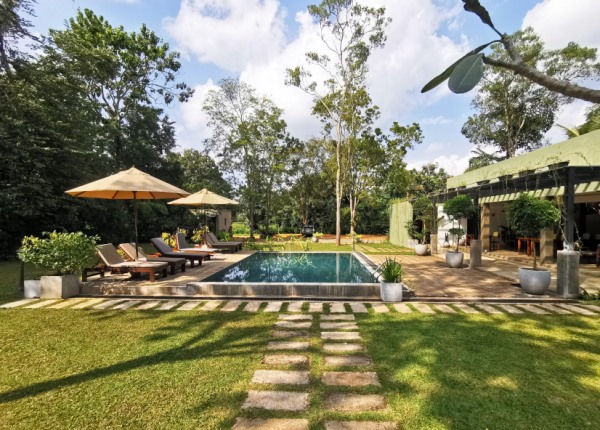 Das Hotel verfügt über lediglich drei Zimmer, was den Gästen eine außergewöhnliche Exklusivität bietet. Das ansprechende Design kombiniert moderne srilankische Eleganz mit einer Terrasse, die einen weiten Blick ins Grüne ermöglicht.